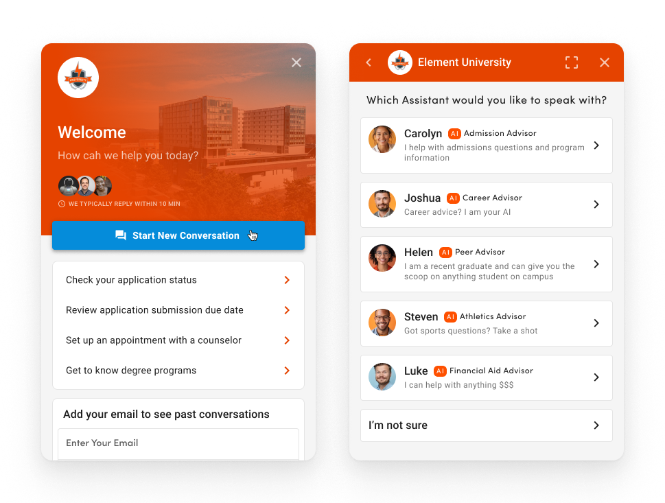 But want a more modern, AI-first way to engage and communicate with students on a personalized level? Element's Bolt AI tools integrate seamlessly with your TargetX CRM.