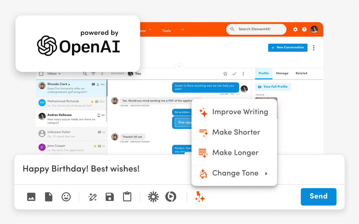 If you’re ready to incorporate AI into your workflow, schedule a call with Element451, the only CRM solution to fully harness the power of artificial intelligence.