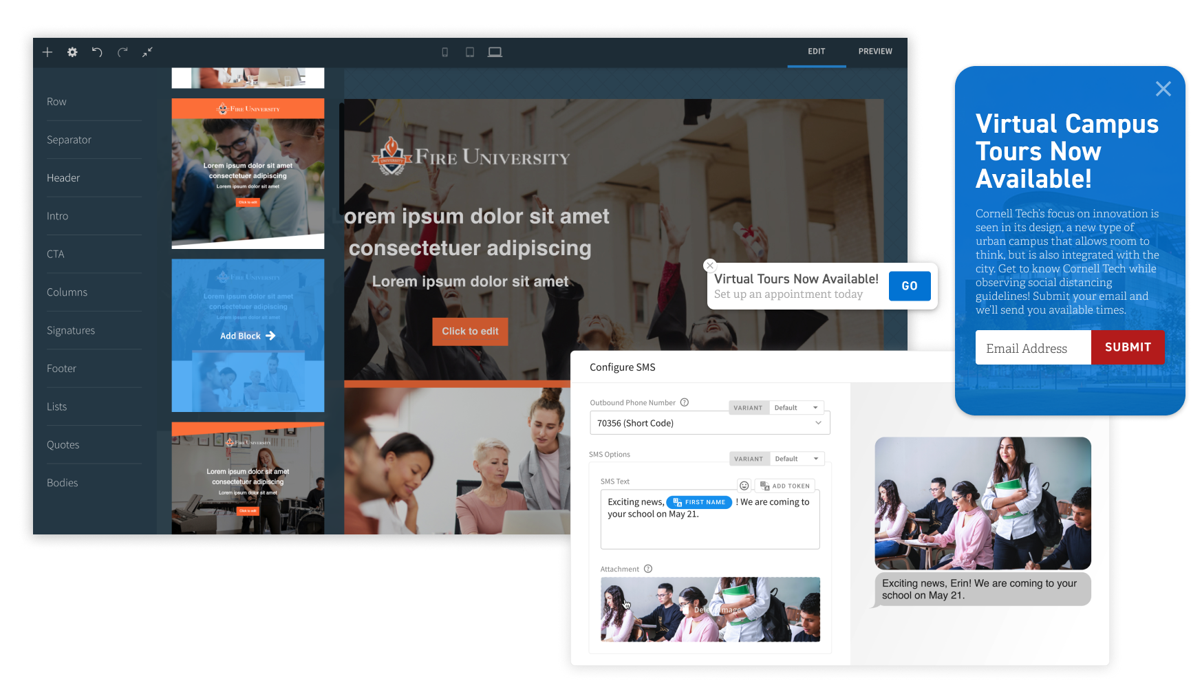 With students bombarded by digital messages, SMS notifications offer a direct way to communicate important deadlines, program information, and next steps. Use your CRM to manage contact information and ensure personalized reminders reach students at the right moments.