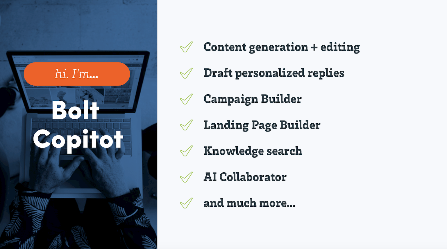 From drafting compelling marketing copy to generating complex research reports, AI like Bolt Copilot, integrated throughout the entire Element451 CRM, is the silent partner in crafting narratives that resonate with audiences across the academic spectrum.
