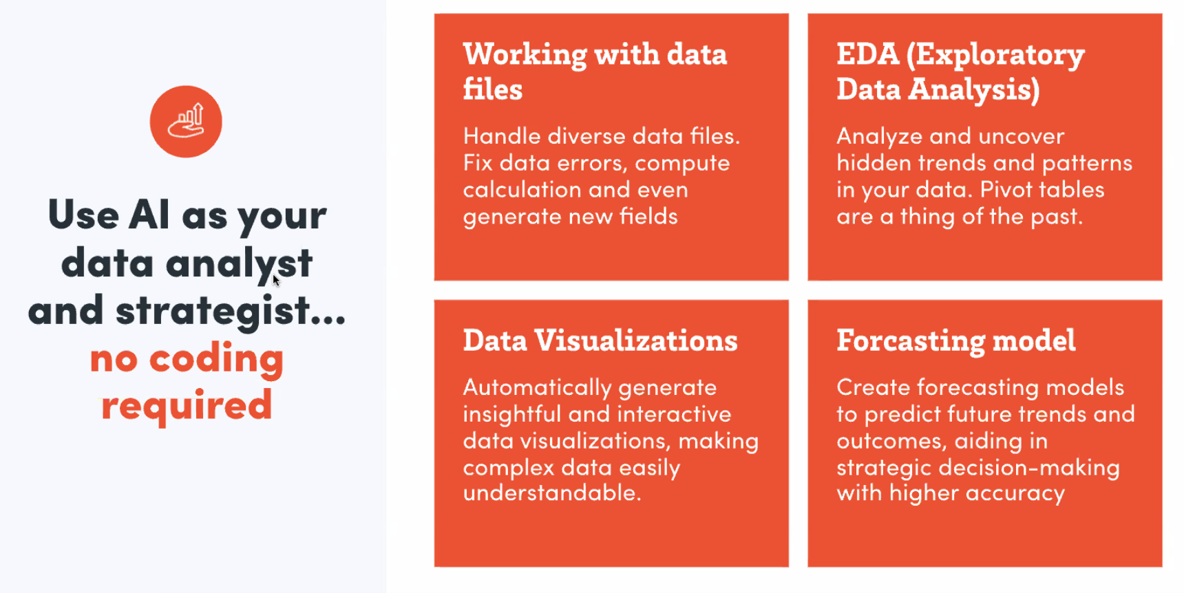 The best part is all you have to do is query the AI like you would a co-worker by asking plain language questions in English. No coding is required.