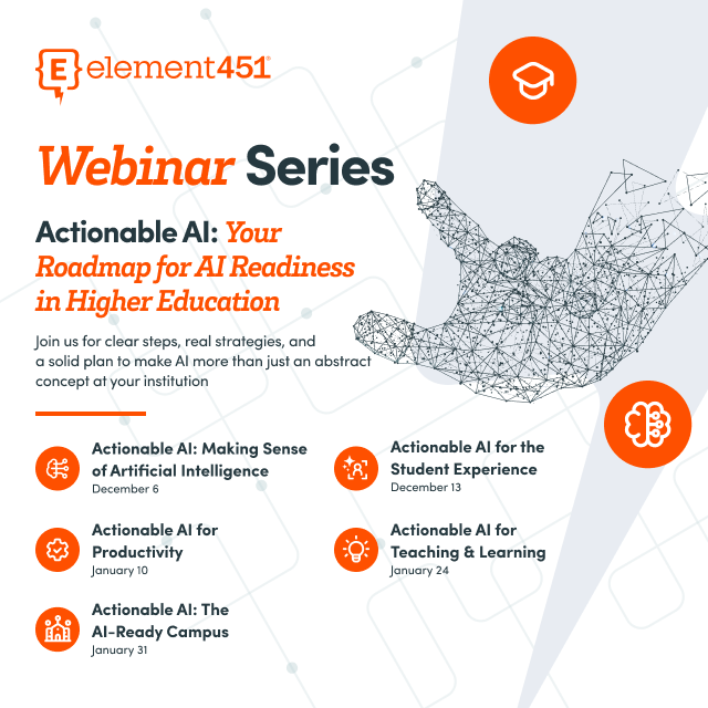 Our Actionable AI: Your Roadmap for AI Readiness in Higher Education webinar series continues full speed ahead.