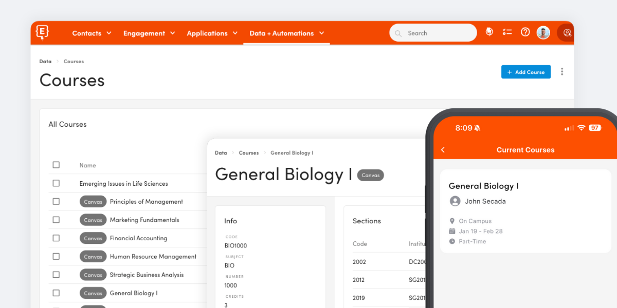 Element451 has long been easy to integrate with other on-campus systems using our powerful API. But we’ve now made it even easier to quickly import course and enrollment data to empower Bolt Agents to proactively reach out to students—often before staff are even aware there’s an issue. Because early, targeted support keeps students on track and improves outcomes.