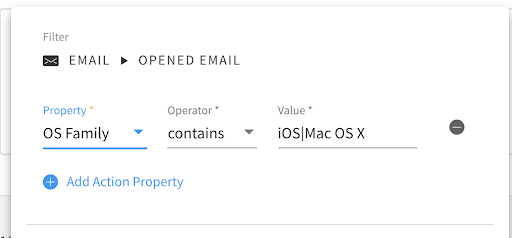 If you have traditionally used email open metrics as goal markers, you might be wondering how much of your subscriber population could potentially be affected by these industry changes. If you’re curious, you can use the Opened Email activity filter to find out how many of your users have opened emails with Apple devices (e.g., “OS Family contains iOS|Mac OS X”).