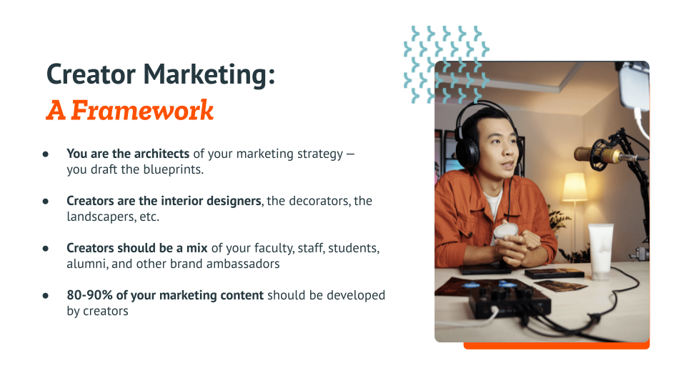 From leveraging creators to integrating AI tools and building owned media channels, Zach outlined the transformative steps institutions can take to create meaningful connections with their audiences. These tactics enhance engagement and support broader enrollment and retention goals.
