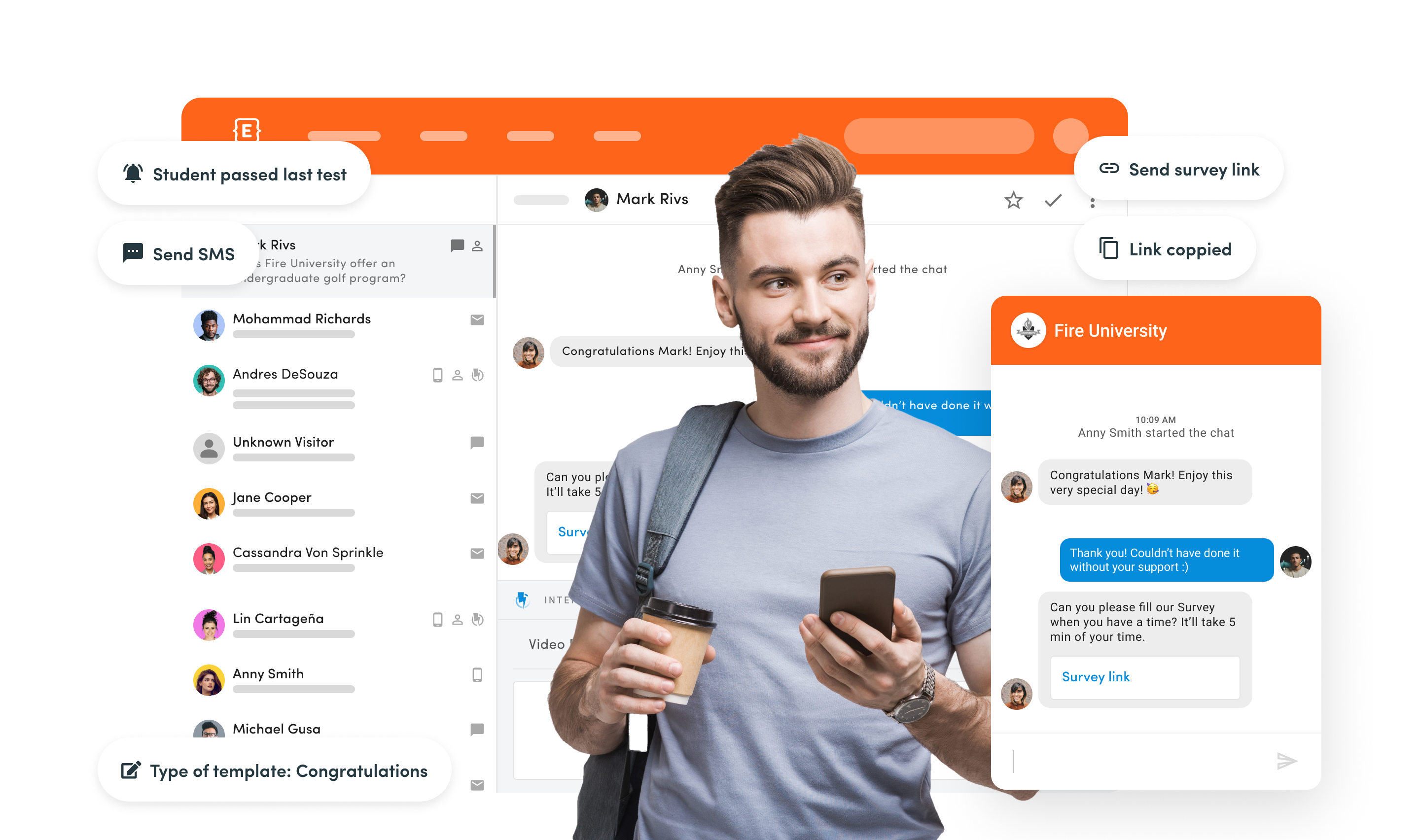 Having a centralized engagement CRM for every step in the student journey gives you the power and freedom to customize what defines an “at-risk” student and set up data points and automation to engage with those students when they need it most. You can also notify the folks on your teams when they need to be made aware.