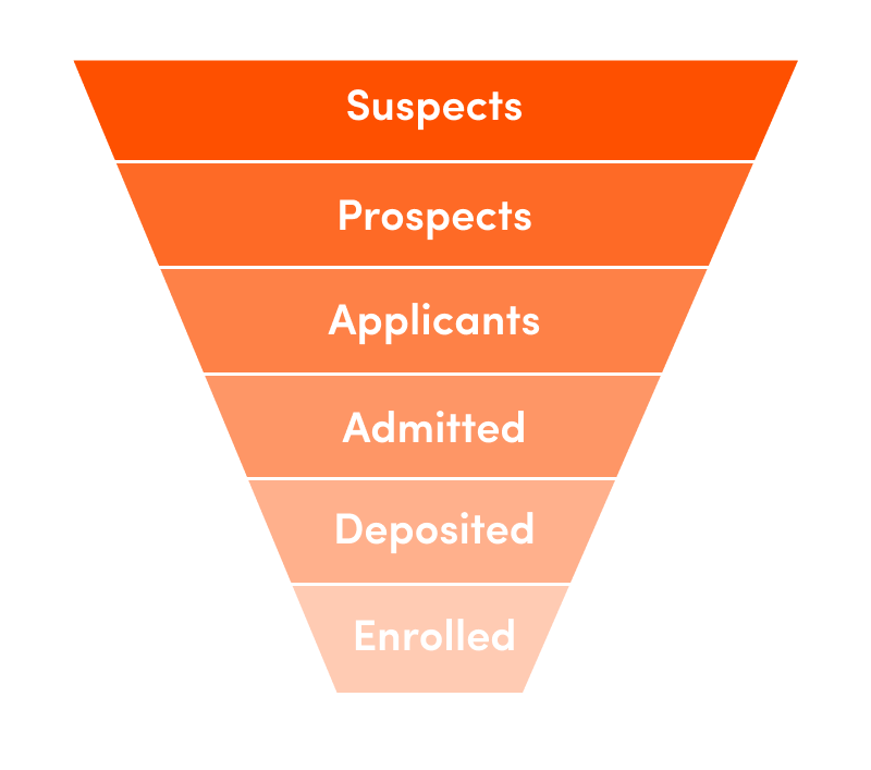 Different institutions may separate the enrollment process into more granular sections, but in general, the funnel always includes these stops along the journey.