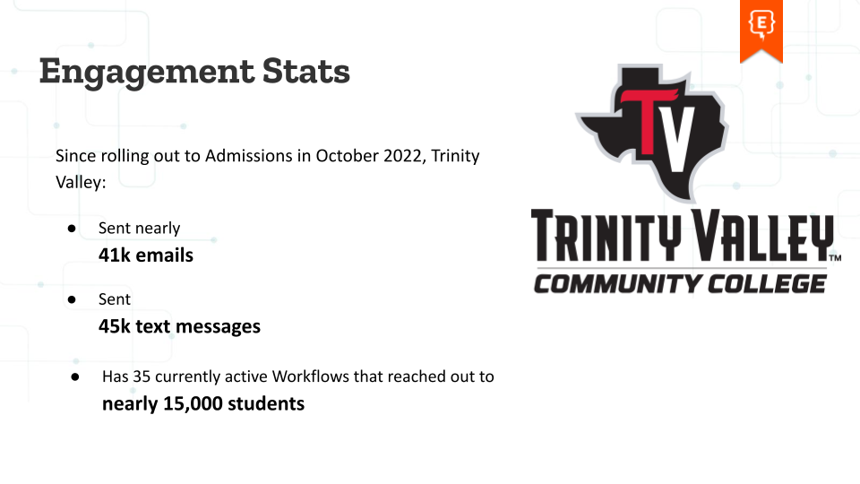 TVCC shared its strategies for revolutionizing student outreach, aligning campus processes, and improving student outcomes through multi-channel communications, data, automation, and cross-department collaboration.