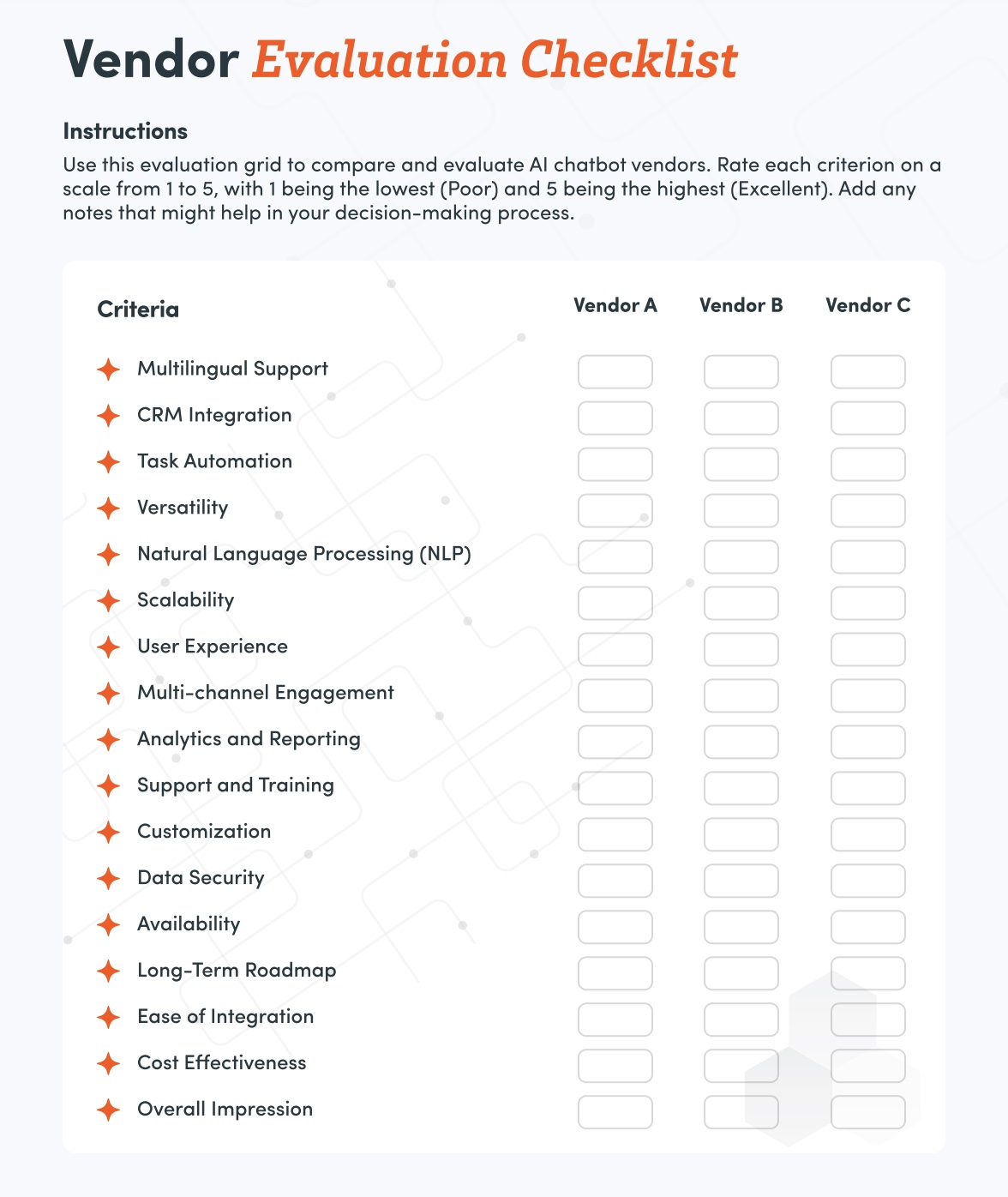 Which is why we built this evaluation checklist. It will become your indispensable evaluation tool, serving not only as a roadmap but also as a critical lens through which to compare the offerings of different vendors.