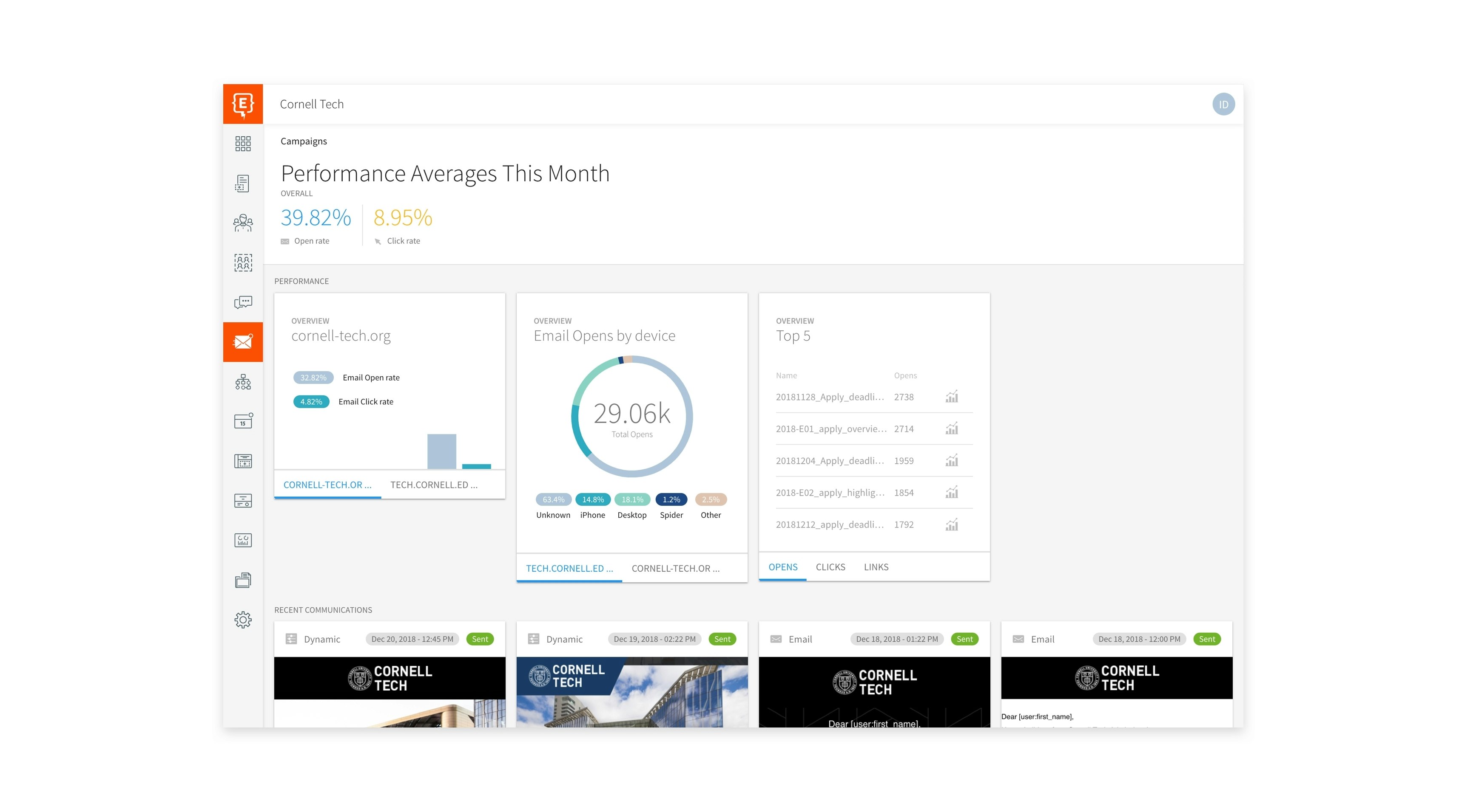 To automate Cornell Tech’s student search emails, we started by working with our sister company, Spark451, to devise a communications plan. The goal was to engage leads by incrementally laying out the case for why they should apply.