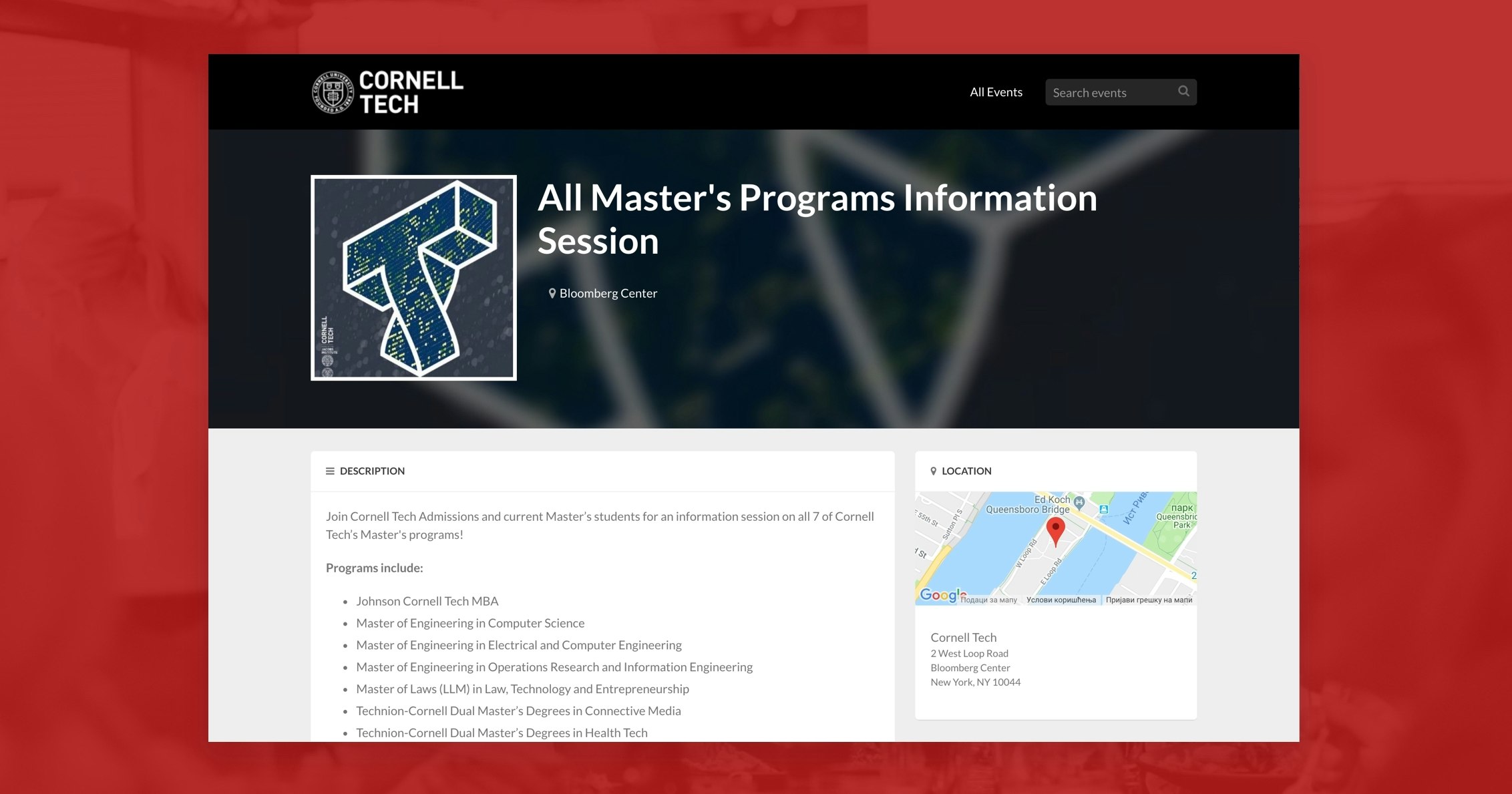 Like many schools, Cornell Tech was using an off-the-shelf product to manage its events. We helped Cornell Tech transition to Element451’s event management module.