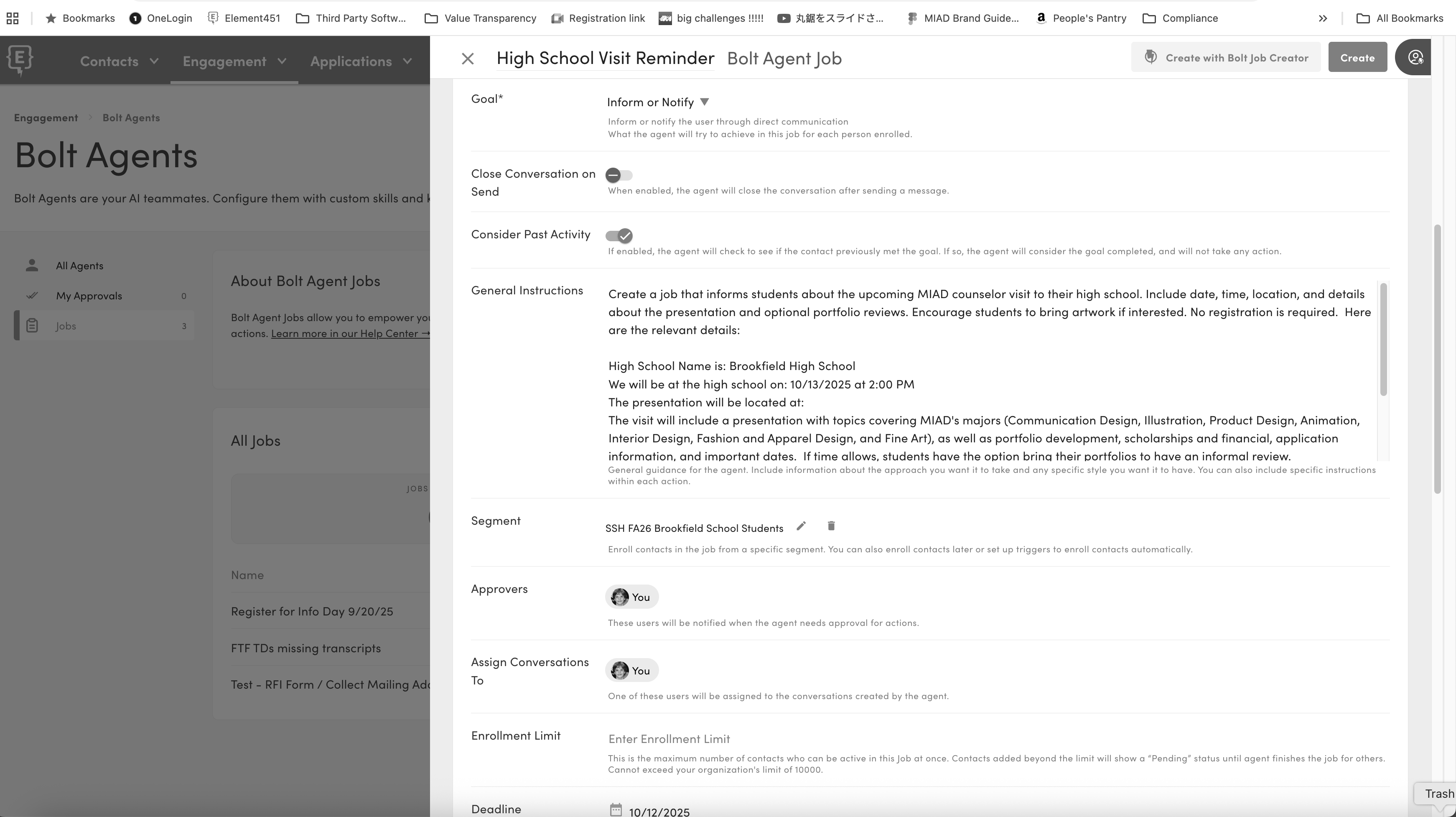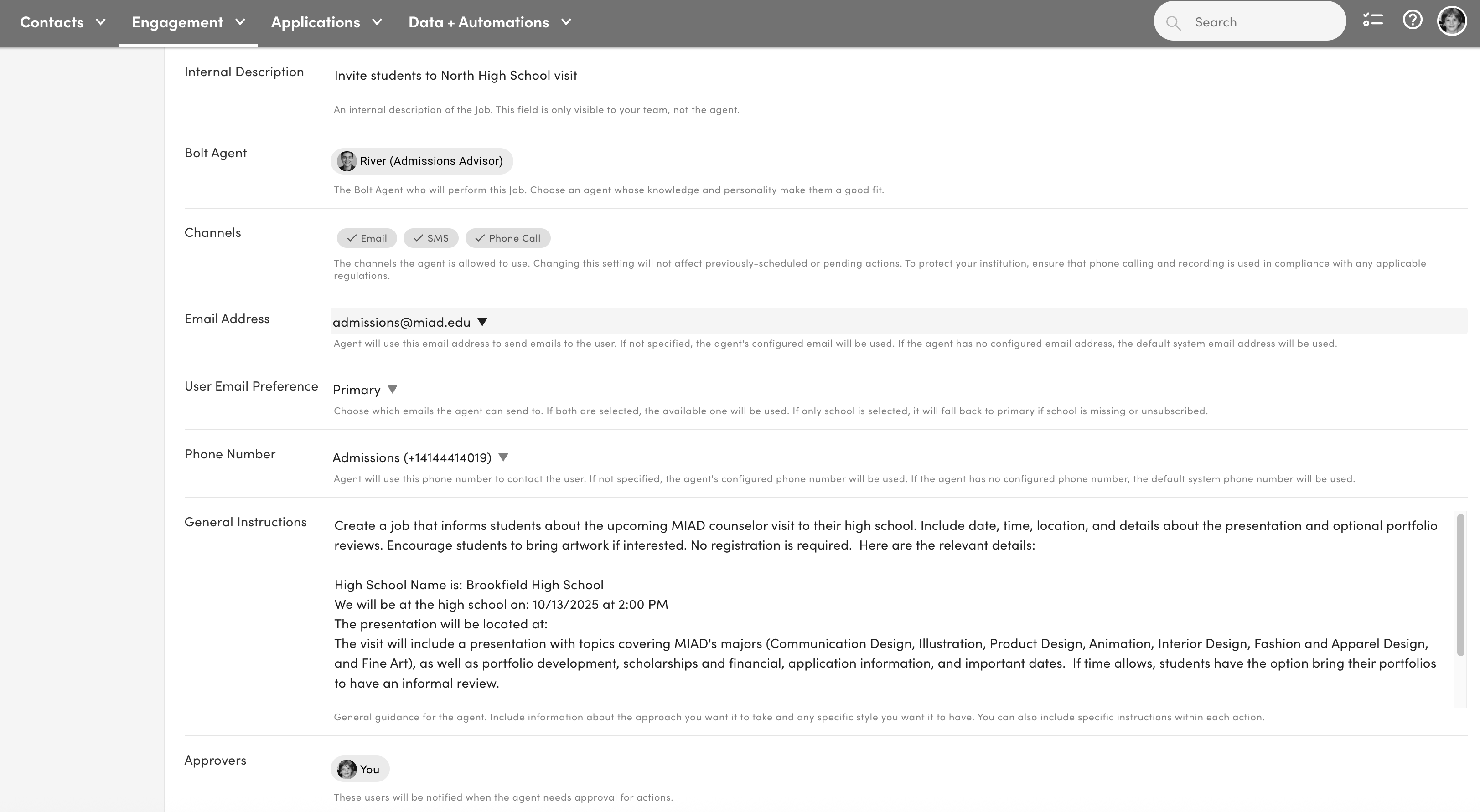 That meant writing prompts carefully so the agent wouldn’t confuse an in-school visit with an on-campus event. But once tuned, it worked—and gave MIAD a scalable way to drive attendance.