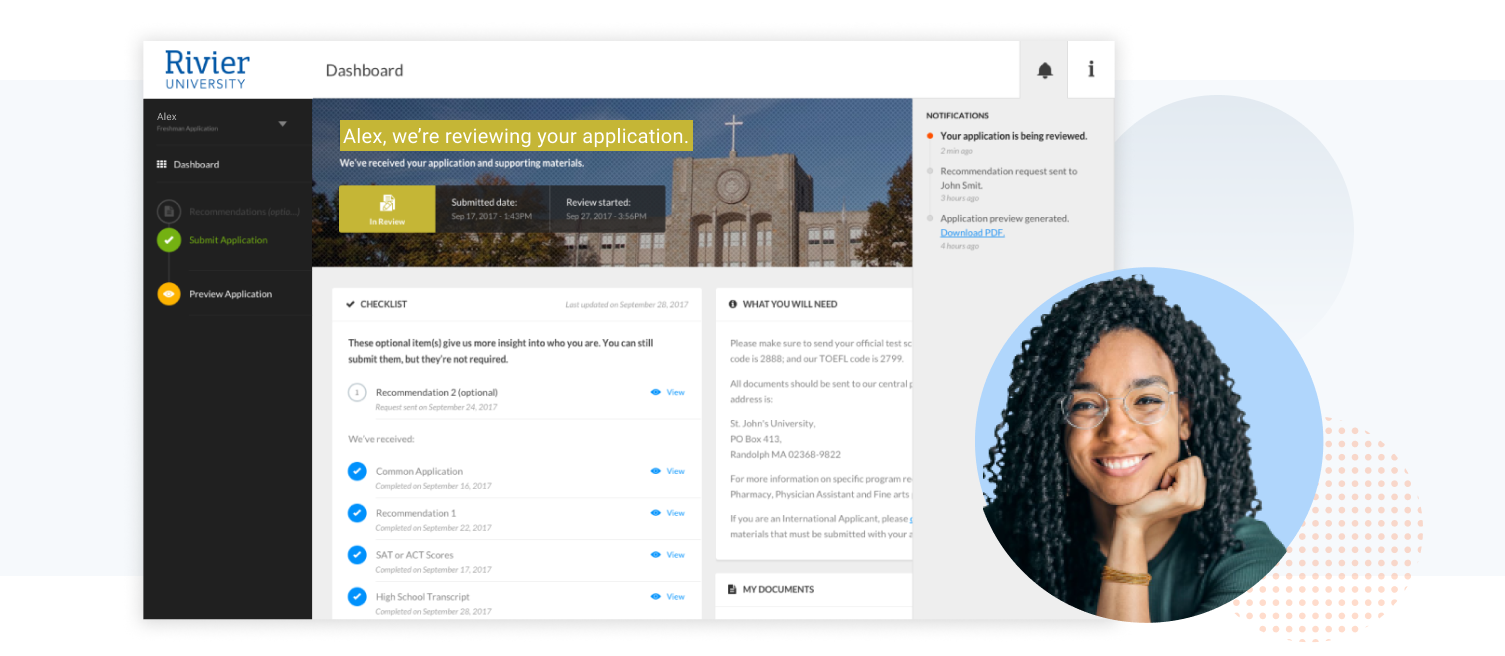 This not only allowed Rivier’s admissions team to process a lot more applications, but because they weren’t waiting on official transcripts or test scores, students could apply on the spot while they were visiting campus, which they feel also attracted students.