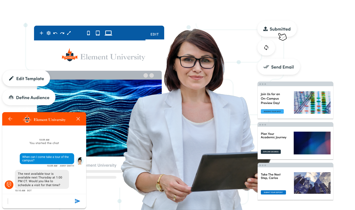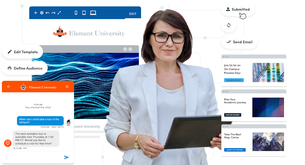 Most schools don't have the right tools to do efficient marketing and recruiting. At Element451, we help schools with software that keeps students engaged and enrolled.