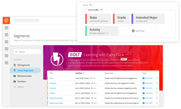 The job is tough for student recruiters, admissions, and enrollment teams. You're juggling multiple tools and solutions, needing to do double to triple the amount of manual data entry. This means scattered student data, generic batch and blast marketing campaigns, and too much time spent fussing with software that wasn't built for the unique needs of higher education.