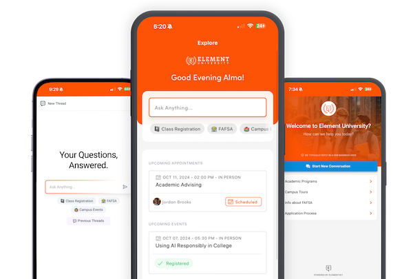 Your digital teammates for answering questions and guiding students—available 24/7 across every channel.