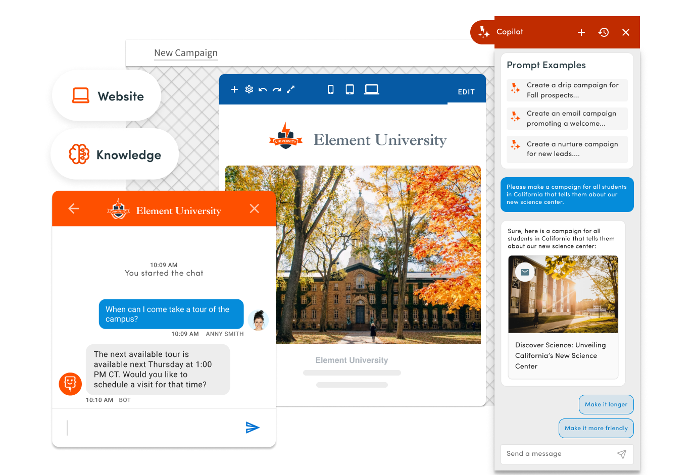 Element451 is the only AI Workforce Platform for higher education. Our friendly experts are here to help you explore how Element451 can improve outcomes for your school.